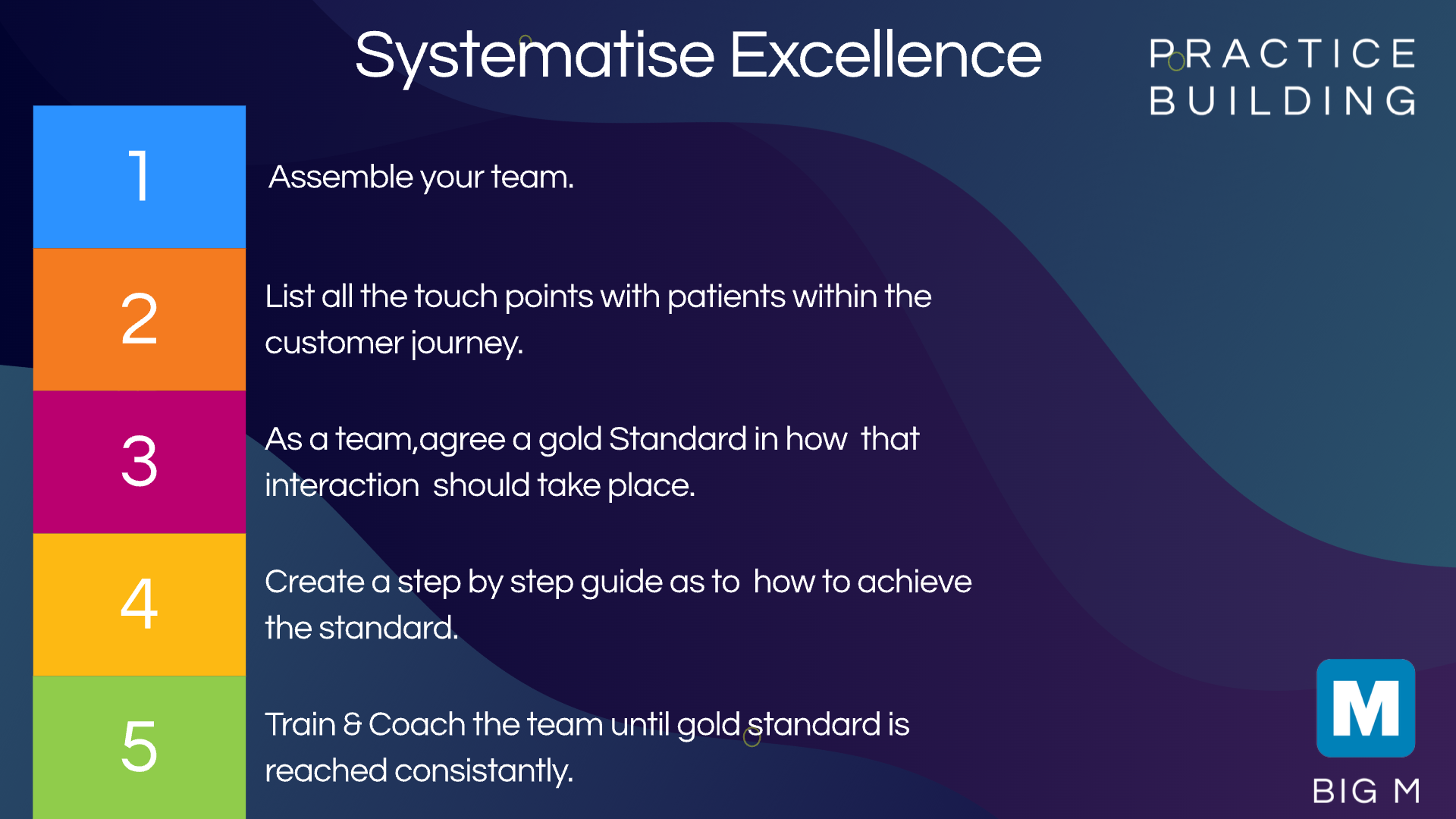 Systematising excellence means creating structured, repeatable processes that consistently produce high-quality results. It involves identifying exactly how your practice consistently delivers a version of optics that is uniquely yours. This approach not only raises standards but also ensures that excellence becomes a habit and is sustainable over time.